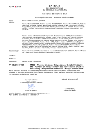 240 - Maintien en milieu ordinaire des personnes en situation de handicap - Propositions financières - Budget primitif 2019