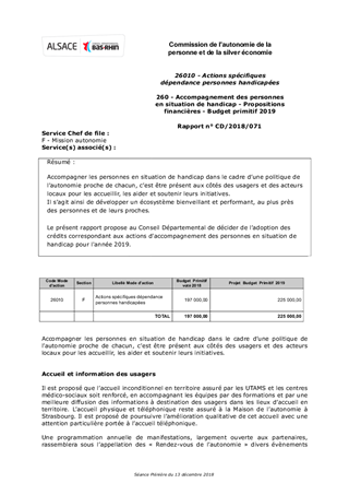 260 - Accompagnement des personnes en situation de handicap - Propositions financières - Budget primitif 2019