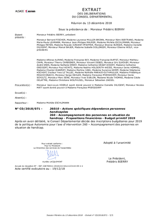 Accompagner les personnes en situation de handicap dans le cadre d’une politique de l’autonomie proche de chacun, c’est être présent aux côtés des usagers et des acteurs locaux pour les accueillir, les aider et soutenir leurs initiatives. Il s’agit ainsi de développer un écosystème bienveillant et performant, au plus près des personnes et de leurs proches. Le présent rapport propose au Conseil Départemental de décider de l’adoption des crédits correspondant aux actions d'accompagnement des personnes en situation de handicap pour l'année 2019.