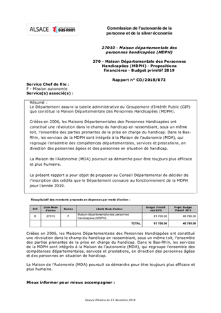 270 - Maison Départementale des Personnes Handicapées (MDPH) - Propositions financières - Budget primitif 2019