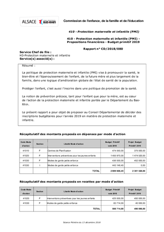 410 - Protection maternelle et infantile (PMI) - Propositions financières - Budget primitif 2019