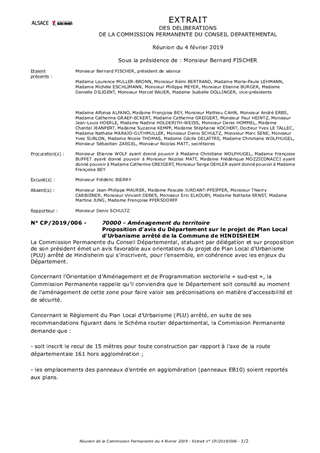 Proposition d’avis du Département sur le projet de Plan Local d’Urbanisme arrêté de la Commune de HINDISHEIM