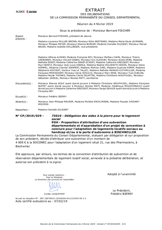 PDH - Proposition d’attribution d'une subvention départementale et d'approbation d'un projet de convention à conclure pour l’adaptation de logements locatifs sociaux au handicap et/ou à la perte d’autonomie à BISCHWILLER