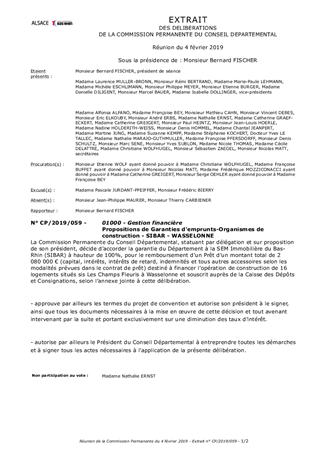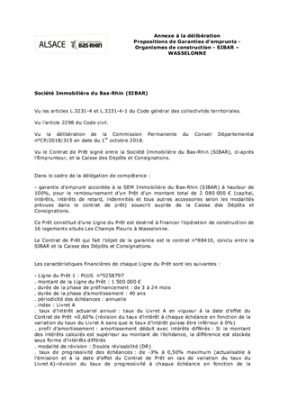 Propositions de Garanties d’emprunts-Organismes de construction - SIBAR - WASSELONNE