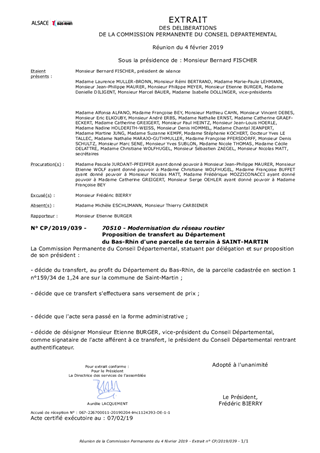 Proposition de transfert au Département du Bas-Rhin d'une parcelle de terrain à SAINT-MARTIN