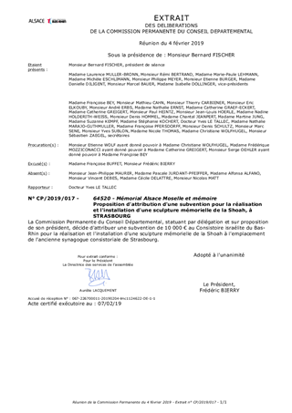 Proposition d'attribution d'une subvention pour la réalisation et l'installation d'une sculpture mémorielle de la Shoah, à STRASBOURG