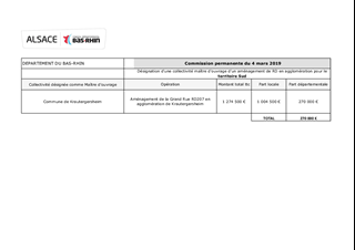 Proposition de désignation de certaines collectivités comme maître d'ouvrage unique pour l'aménagement de routes départementales en agglomération - KRAUTERGERSHEIM