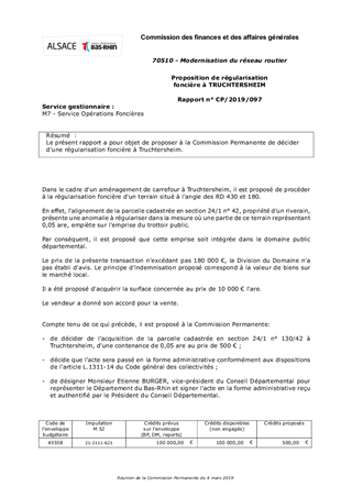 Le présent rapport a pour objet de proposer à la Commission Permanente de décider d'une régularisation foncière à Truchtersheim.