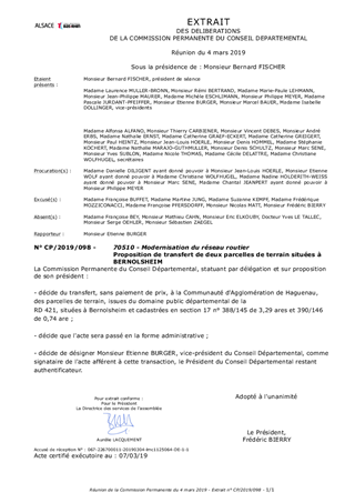 Proposition de transfert de deux parcelles de terrain situées à BERNOLSHEIM