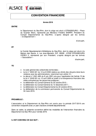 Afin de favoriser l'organisation et les conditions de la pratique sportive pour tous, le Département s'est engagé avec les comités sportifs départementaux dans le cadre de conventions pluriannuelles 2017 - 2019. Le présent rapport a pour objet de proposer à la Commission Permanente de décider d'attribuer des aides pour 2019 aux comités sportifs départementaux et d'approuver les termes des projets de conventions financières à conclure avec eux. Par ailleurs, il a également pour objet de proposer à la Commission Permanente de décider d'attribuer des aides pour la saison 2018/2019 aux clubs "passerelles" évoluant au 2ème niveau professionnel, et d'approuver les projets d'actions proposés et les termes des projets de conventions financières à conclure avec ces clubs.