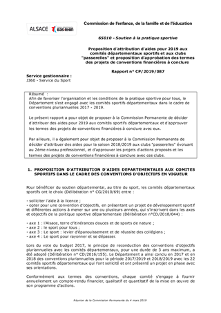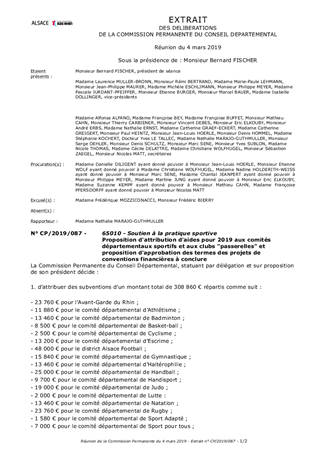 Proposition d'attribution d'aides pour 2019 aux comités départementaux sportifs et aux clubs "passerelles" et proposition d'approbation des termes des projets de conventions financières à conclure