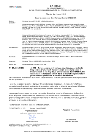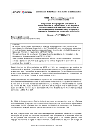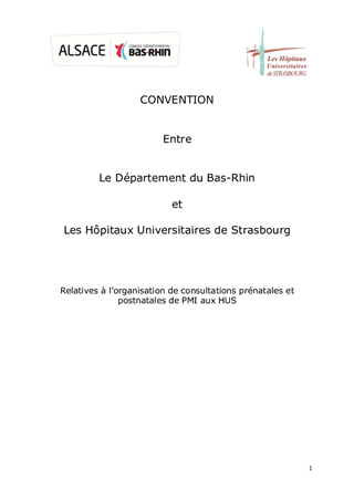 Proposition d'un projet de convention à conclure entre le Département et les Hôpitaux Universitaires de STRASBOURG concernant le fonctionnement de la consultation prénatale et postnatale de protection maternelle et infantile