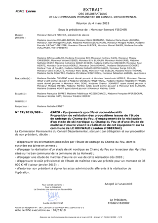 Proposition de validation des propositions issues de l’étude de cadrage du Champ du Feu, d’engagement de la réalisation d’un stade de ski nordique au Champ du Feu et d’une étude de maitrise d’œuvre visant la réalisation de cet équipement sur la commune de LE HOHWALD (canton d’OBERNAI)