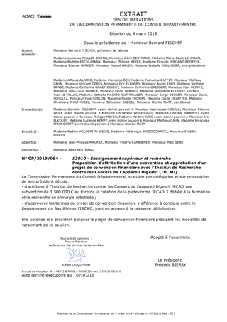 Proposition d'attribution d'une subvention et approbation d'un projet de convention financière avec l'Institut de Recherche contre les Cancers de l'Appareil Digestif (IRCAD)