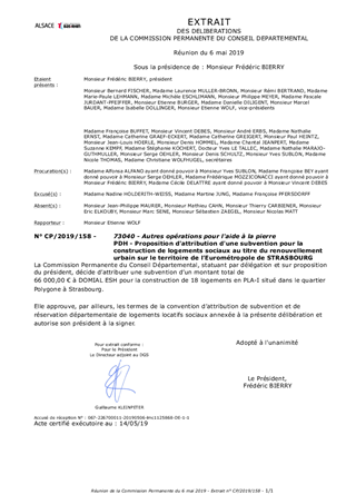 PDH - Proposition d'attribution d'une subvention pour la construction de logements sociaux au titre du renouvellement urbain sur le territoire de l’Eurométropole de STRASBOURG