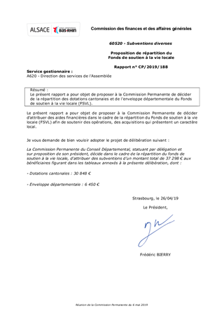 Le présent rapport a pour objet de proposer à la Commission Permanente de décider de la répartition des dotations cantonales et de l'enveloppe départementale du Fonds de soutien à la vie locale (FSVL).
