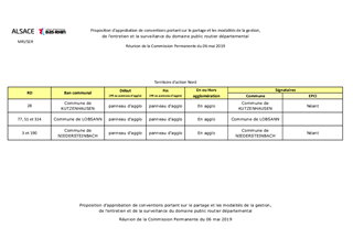 Le Département peut autoriser d’autres collectivités à réaliser des travaux d’investissement sur son domaine public routier, sous réserve que soient pris en charge la gestion, l’entretien et la surveillance des ouvrages ainsi construits par ces collectivités. Les projets de conventions qu’il est proposé de décider de conclure à ce titre ont été établis à partir d’un modèle-type approuvé par délibération de la Commission Permanente du 5 septembre 2011 (délibération n° CP/2011/619). Il est proposé à la Commission Permanente de décider d'approuver les termes des projets de convention à conclure entre la Commune de Kutzenhausen, la Commune de Lobsann, la Commune de Niedersteinbach et le Département du Bas-Rhin, et d’autoriser le président du Conseil Départemental à signer ces conventions.