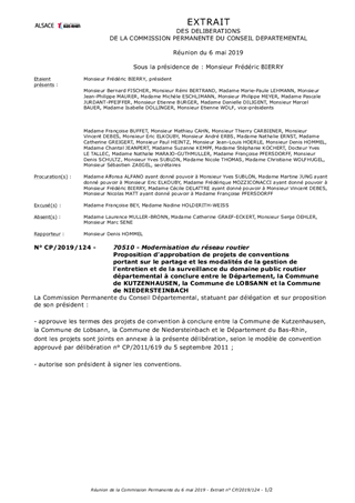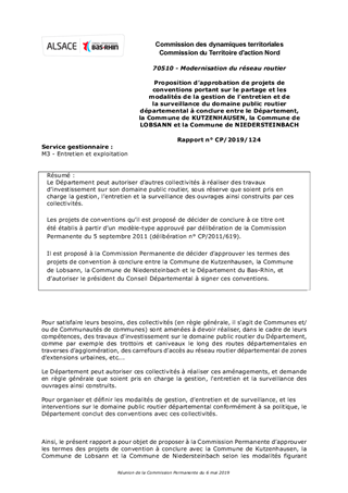 Proposition d’approbation de projets de conventions portant sur le partage et les modalités de la gestion de l’entretien et de la surveillance du domaine public routier départemental à conclure entre le Département, la Commune de KUTZENHAUSEN, la Commune de LOBSANN et la Commune de NIEDERSTEINBACH