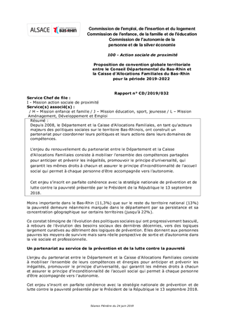 Proposition de convention globale territoriale entre le Conseil Départemental du Bas-Rhin et la Caisse d’Allocations Familiales du Bas-Rhin pour la période 2019-2022