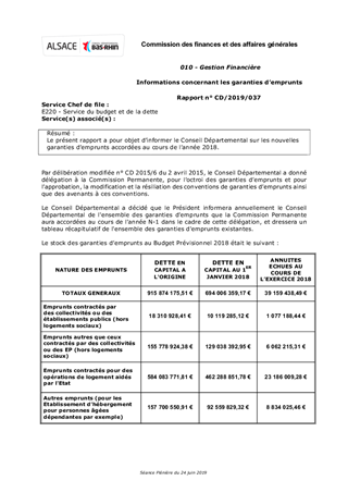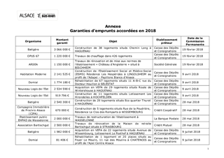 Le présent rapport a pour objet d’informer le Conseil Départemental sur les nouvelles garanties d’emprunts accordées au cours de l’année 2018.