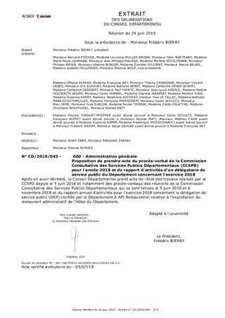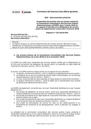 Proposition de prendre acte du procès-verbal de la Commission Consultative des Services Publics Départementaux (CCSPD) pour l'année 2018 et du rapport d'activités d'un délégataire de service public du Département concernant l'exercice 2018