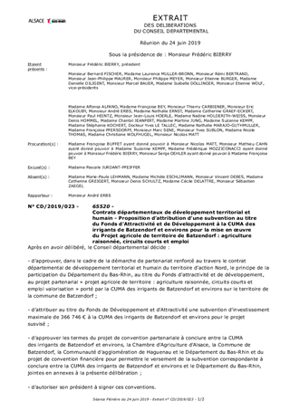 Contrats départementaux de développement territorial et humain - Proposition d'attribution d'une subvention au titre du Fonds d'Attractivité et de Développement à la CUMA des irrigants de Batzendorf et environs pour la mise en œuvre du Projet agricole de territoire de Batzendorf : agriculture raisonnée, circuits courts et emploi