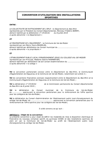 Le Département du Bas-Rhin a décidé, par délibérations du Conseil Départemental n°CD/2016/158 du 8 décembre 2016 et CD/2017/004 du 20 mars 2017, de développer, sur la période 2018 – 2021, un partenariat renforcé avec les acteurs locaux en mettant en oeuvre des contrats départementaux de développement territorial et humain. Ces contrats ont vocation à traduire une ambition collective à l’échelle de chaque territoire d’action du Département et à définir les enjeux prioritaires d’aménagement et de développement co-construits avec les acteurs des territoires. Le projet vise à renforcer l'offre sportive à destination des collégiens du collège du Val-de-Moder et s'inscrit dans les enjeux prioritaires "Assurer la réussite éducative et l'épanouissement des jeunes" et "Conforter, maintenir et pérenniser l'offre de services au public". Il est proposé à la Commission permanente du Conseil Départemental de décider d'attribuer, au titre du Fonds de Développement et d'Attractivité, à la Communauté d'Agglomération de Haguenau et à la Commune de Val-de-Moder des contributions financières pour la construction d'un complexe sportif, pour la modernisation du gymnase COSEC du Val-de-Moder et pour la rénovation des espaces sportifs extérieurs et d'approuver les termes du projet de convention de partenariat à conclure avec la Communauté d'Agglomération de Haguenau et la Commune de Val-de-Moder.