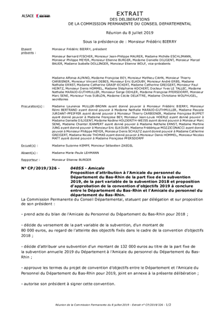 Proposition d’attribution à l’Amicale du personnel du Département du Bas-Rhin de la part fixe de la subvention 2019, de la part variable de la subvention 2018 et proposition d’approbation de la convention d’objectifs 2019 à conclure entre le Département du Bas-Rhin et l’Amicale du personnel du département du Bas-Rhin.