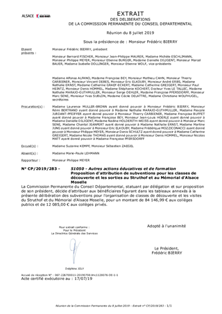 Proposition d'attribution de subventions pour les classes de découverte et les sorties au Struthof et au Mémorial d'Alsace Moselle