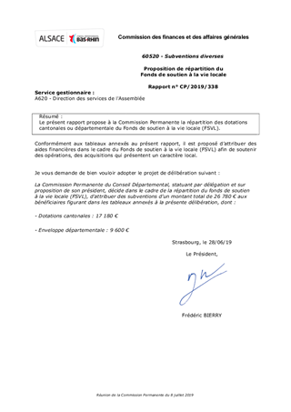Le présent rapport propose à la Commission Permanente la répartition des dotations cantonales ou départementale du Fonds de soutien à la vie locale (FSVL).