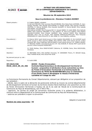 Contrats Départementaux de développement territorial et humain : proposition d'attribution d'une subvention au titre du Fonds d'Innovation Territoriale à la Communauté de Communes du PAYS DE WISSEMBOURG pour la réalisation d'une étude visant à développer le réseau d'itinéraires cyclables et l'usage du vélo