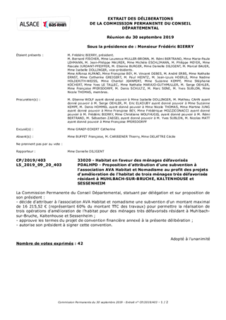 PDALHPD - Proposition d'attribution d'une subvention à l'association AVA Habitat et Nomadisme au profit des projets d'amélioration de l'habitat de trois ménages très défavorisés résidant à MUHLBACH-SUR-BRUCHE, KALTENHOUSE et SESSENHEIM