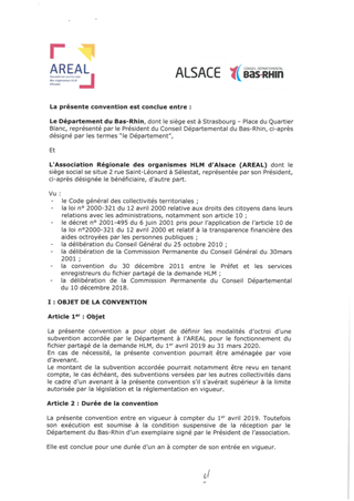Le présent rapport propose à la Commission Permanente de décider de renouveler la participation du Département, pour l’exercice 2019, au fonctionnement du système d'enregistrement de la demande de logements HLM dénommé IMHOWEB. Ce fichier partagé de la demande, mis en œuvre et géré par l'association régionale des organismes HLM d'Alsace (AREAL), est régi par la loi du 24 mars 2014 pour l'accès au logement et un urbanisme rénové.