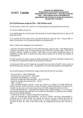 Propositions de garanties d’emprunts-Organismes de construction - Nouveau Logis de l’Est - CDC Habitat social et approbation des termes du projet de convention de garantie à conclure - CHATENOIS