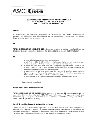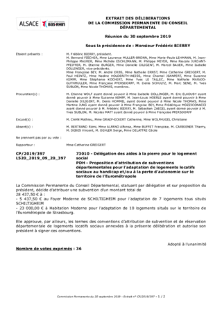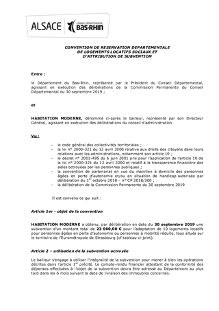 Le présent rapport propose à la Commission Permanente l’attribution d’une subvention au Foyer Moderne de Schiltigheim pour l’adaptation de 7 logements situés à Schiltigheim et à Habitation Moderne pour l'adaptation de 10 logements situés sur le territoire de l'Eurométropole de Strasbourg.