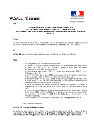 Le présent rapport propose à la Commission Permanente d’attribuer à Opus 67 une subvention pour la réhabilitation énergétique de 69 logements à Schirmeck.