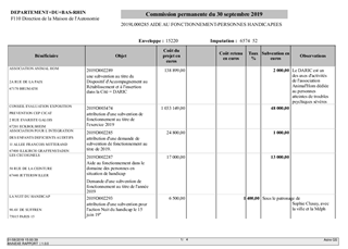 Le présent rapport propose à la Commission Permanente d’attribuer des subventions de fonctionnement à des associations et structures œuvrant dans le domaine du handicap et d’approuver les projets de convention à conclure entre le Département du Bas-Rhin et le CEP-CICAT, et entre le Département du Bas-Rhin et l’AAPEI de Strasbourg.