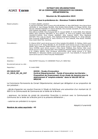 Contrat Départemental - Fonds d'innovation territoriale - Proposition de financement d'une étude de besoins pour le déploiement d'"emplois aidants" dans la VALLEE DE LA BRUCHE