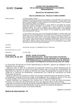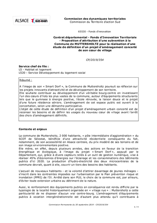 Contrat départemental - Fonds d'Innovation Territoriale - Proposition d'attribution d'une subvention à la Commune de MUTTERSHOLTZ pour la réalisation d'une étude de définition d'un projet d'aménagement concerté de son cœur de village