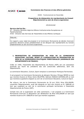 Ce rapport a pour objet de proposer à la Commission Permanente de décider d'annuler certaines décisions prises précédemment et de désigner des représentants du Conseil Départemental au sein de divers organismes.
