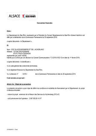 Contrats Départementaux-Proposition de financement et d'approbation du projet de convention partenariale pour l'extension de la Maison de services au public du Kochersberg