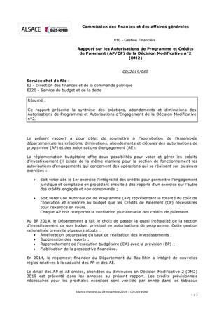 Rapport sur les Autorisations de Programme et Crédits de Paiement (AP/CP) de la Décision Modificative n°2 (DM2)