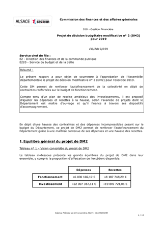 Projet de décision budgétaire modificative n° 2 (DM2) pour 2019
