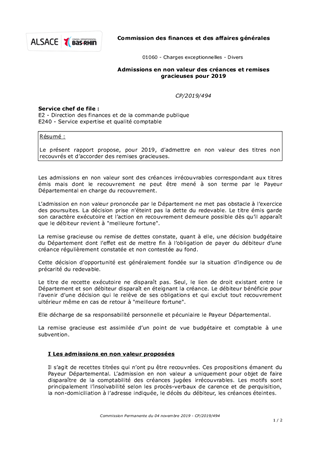 Admissions en non valeur des créances et remises gracieuses pour 2019