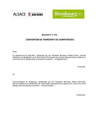Le présent rapport a pour objet de modifier les conditions et les modalités du transfert fixées dans la convention du 20 décembre 2016, concernant les moyens immobiliers mis à disposition pour l'exercice de la compétence "gestion des routes classées dans le domaine public routier départemental". La modification souhaitée par le Département du Bas-Rhin et l'Eurométropole de Strasbourg nécessite la conclusion d'un avenant. Elle doit permettre ultérieurement de procéder aux opérations foncières en vue de l'implantation, par la Ville de Strasbourg, d'une école élémentaire au droit de l'actuelle unité technique d'entretien des routes.