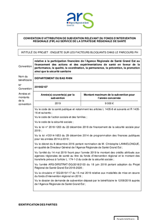 Proposition de conventions avec l’Agence Régionale de Santé (ARS) pour le co-financement de deux enquêtes Démarche « Territoire 100% inclusif »