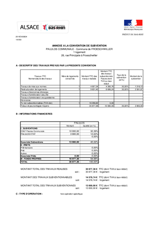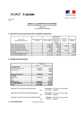 PDH - Proposition d’attribution de subvention pour la création de logements locatifs sociaux communaux à RATZWILLER et FROESCHWILLER et approbation de projets de conventions à conclure