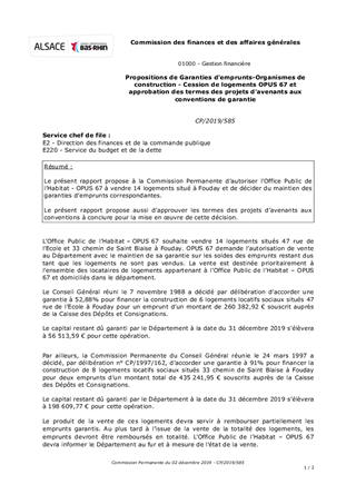Propositions de Garanties d’emprunts-Organismes de construction - Cession de logements OPUS 67 et approbation des termes des projets d’avenants aux conventions de garantie