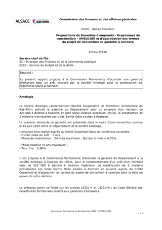 Le présent rapport propose à la Commission Permanente d’accorder une garantie d’emprunt pour un prêt souscrit par la société Amelogis pour la construction de logements situés à Rosheim.