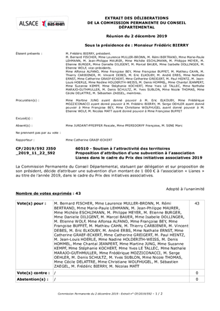 Par délibération n° CD/2017/027 du 19 juin 2017, le Conseil Départemental a approuvé la co-construction d’une politique départementale et les orientations en faveur du soutien à la vie associative visant à encourager le rôle des associations dans le vivre ensemble, favoriser le développement de projets innovants et promouvoir l’engagement. La Rentrée des Associations, organisée les 28 et 29 septembre derniers par la Maison des Associations de Strasbourg, a permis d’aller à la rencontre des structures afin de poursuivre le dialogue initié par les Assises de l’Engagement. Il a été proposé aux partenaires de cette manifestation (la Ville de Strasbourg, CUS Habitat, la Banque Populaire, la Région...) de distinguer, par l’attribution d’une subvention, une association dont l’action répond à une thématique relevant de leurs compétences respectives. Le présent rapport a pour objet de proposer à la Commission Permanente d’attribuer une subvention de fonctionnement à l'association Lianes, dans le cadre du Prix des initiatives associatives 2019.